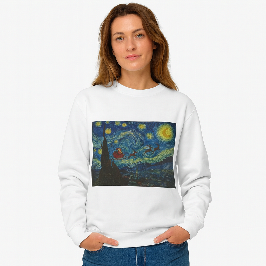 Starry Night Santa Long Sleeve T-Shirt | Van Gogh Style Christmas Artwork