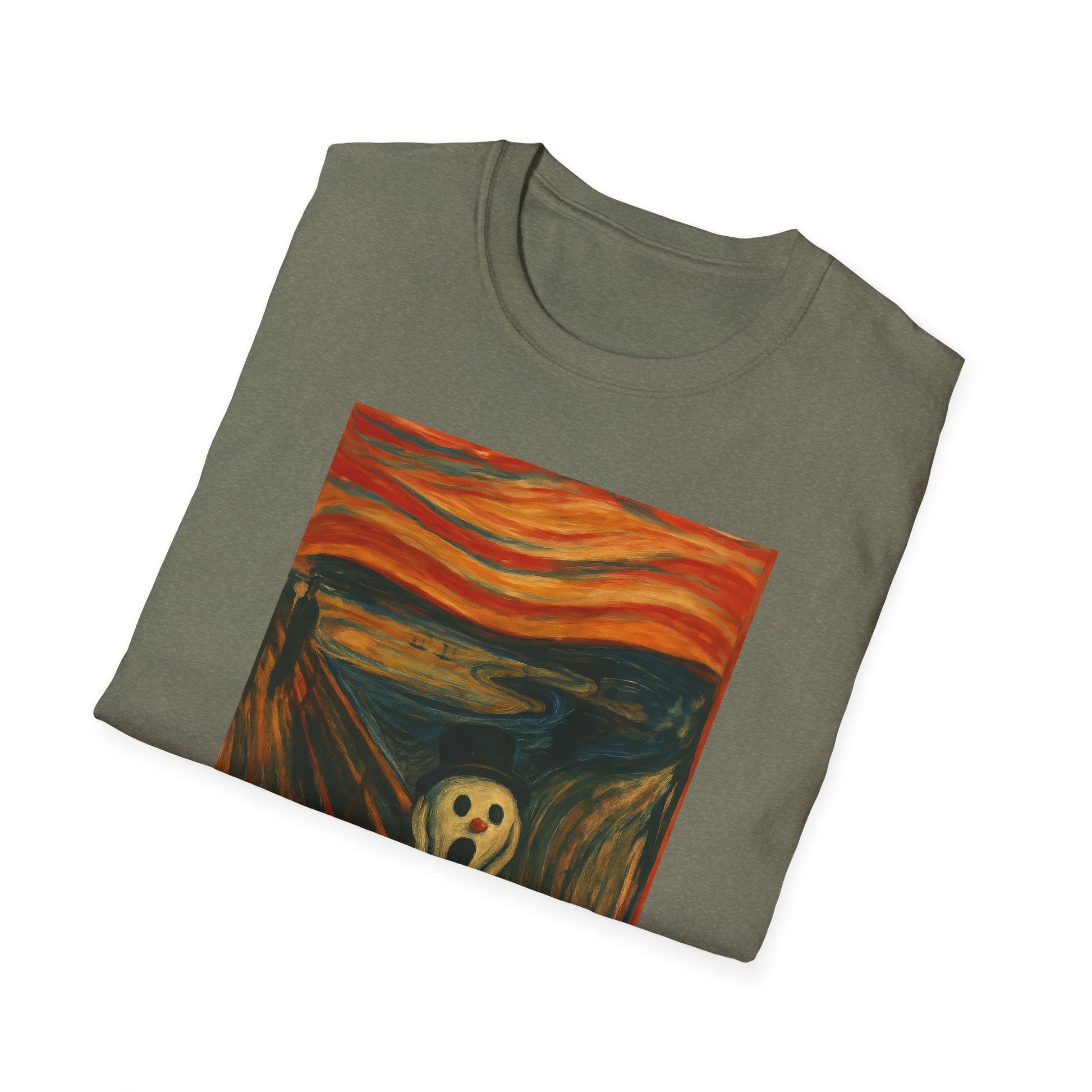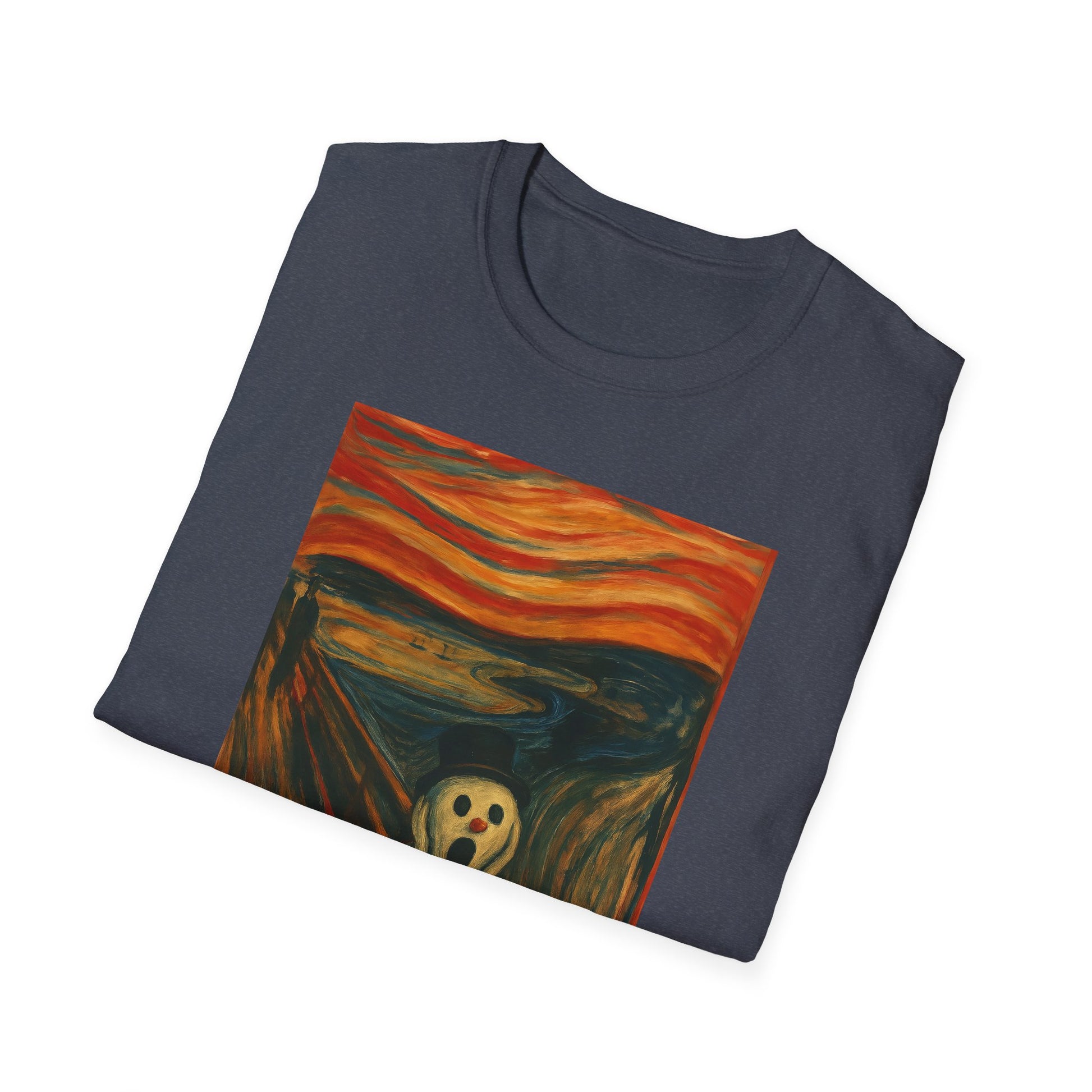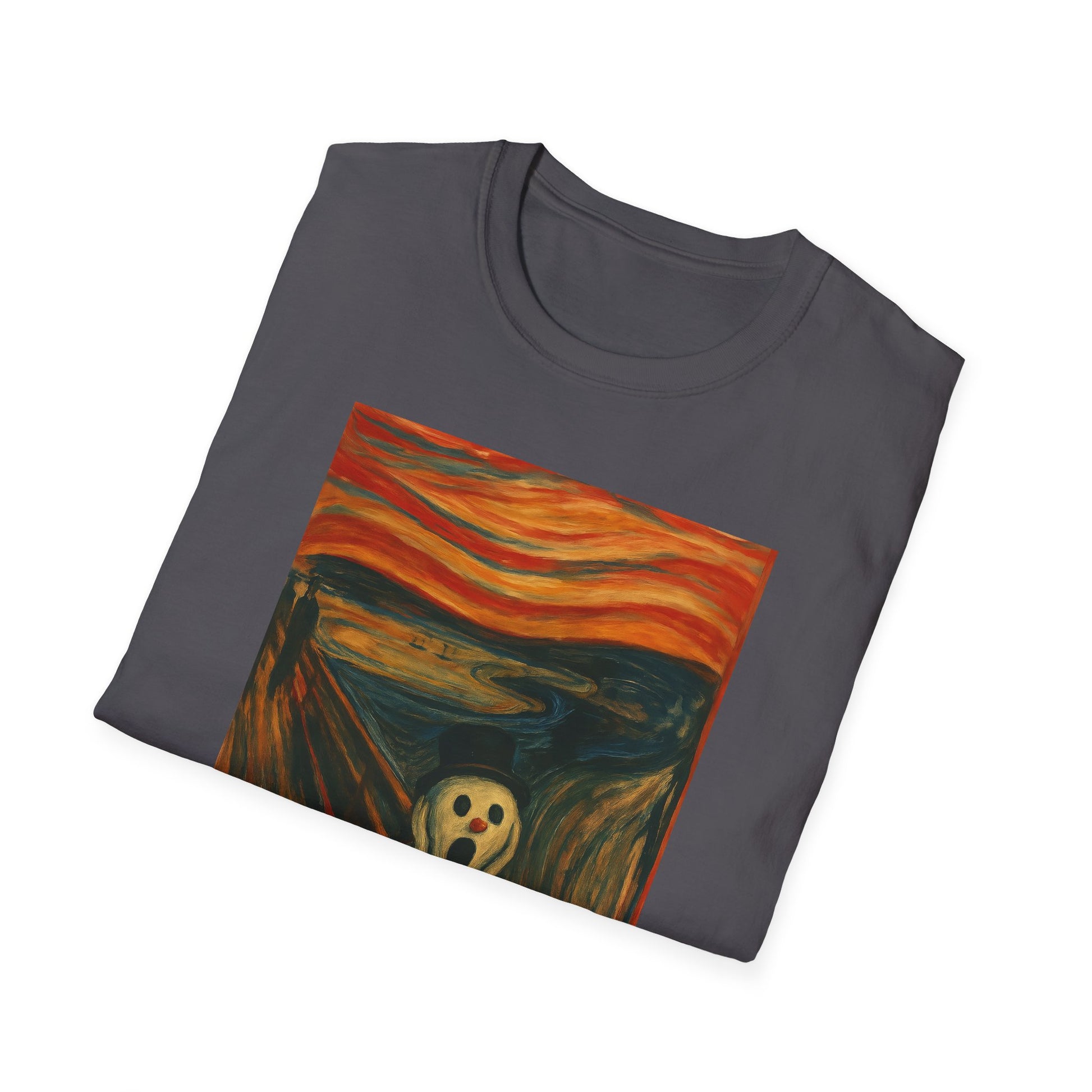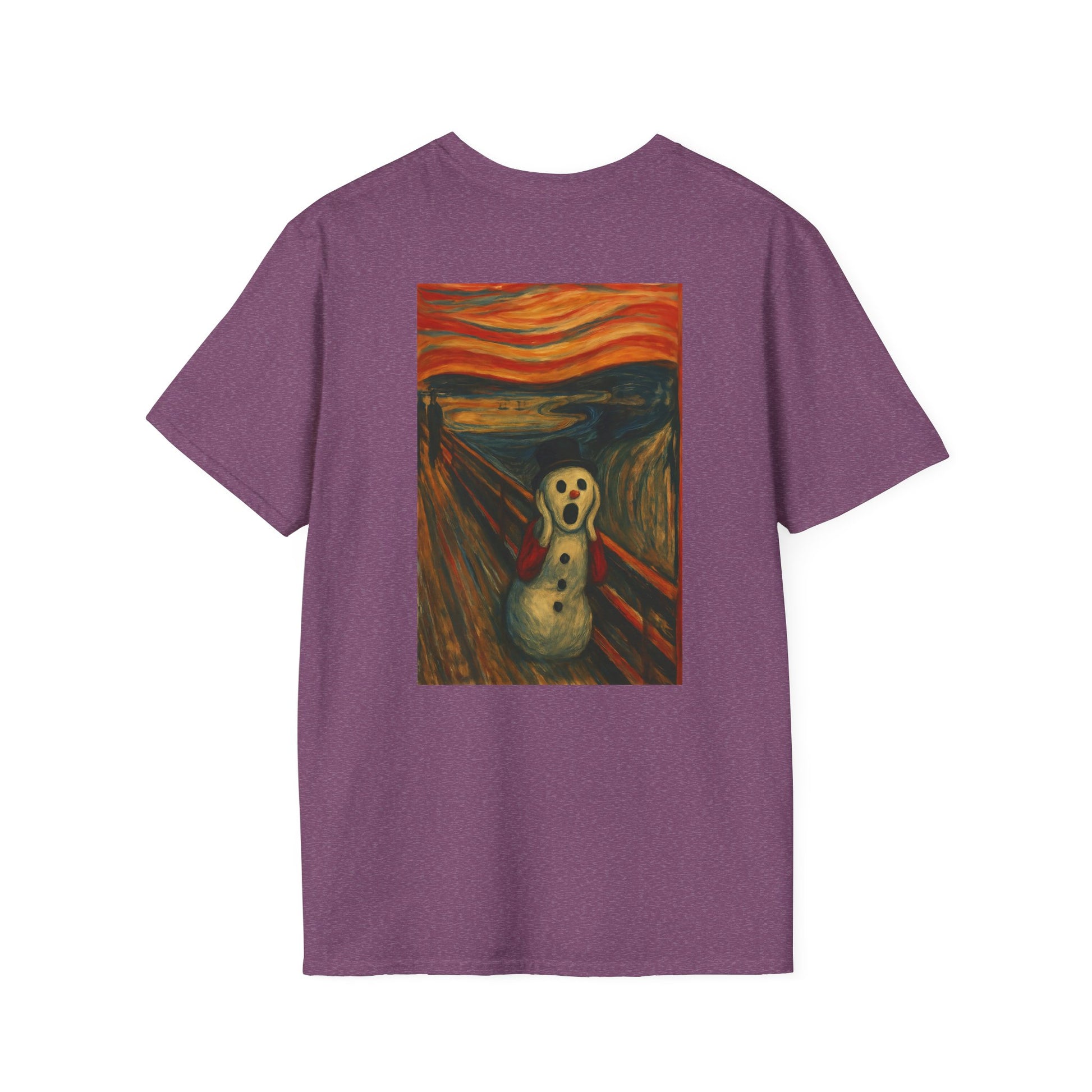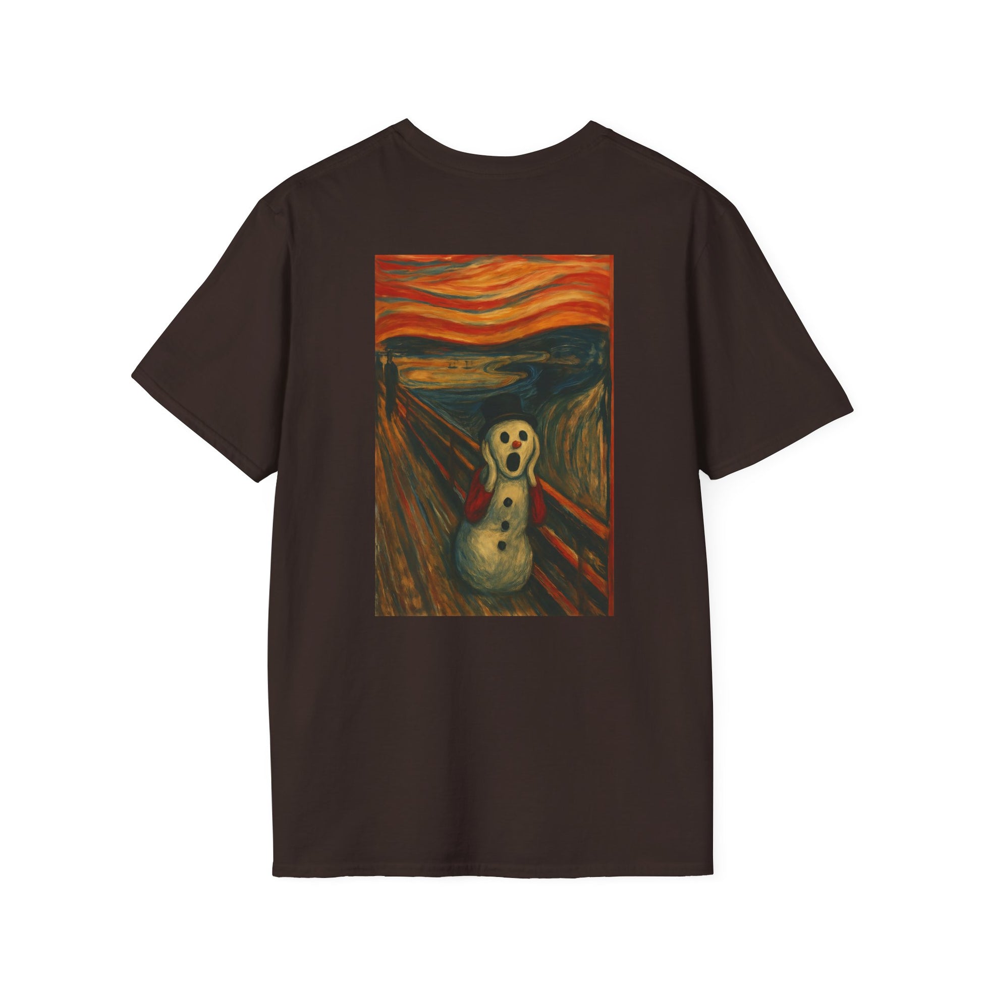 A soft, breathable tee that carries a playful, artful twist — a crisp print of a snowman version of Edvard Munch’s The Scream on the front (and back), ready to spark smiles and conversation. Lightweight ring-spun cotton drapes easily over the body, while a classic crew neckline and clean fit keep the look relaxed and wearable. The image brings a touch of offbeat humor and museum-inspired charm to everyday outfits: wear it layered under a coat for chilly walks, to relaxed gallery nights, or to casual gatherings where you want a little ironic warmth. Ethically sourced cotton and quality printing mean the colors stay vivid and the shirt feels gentle against the skin, wash after wash.