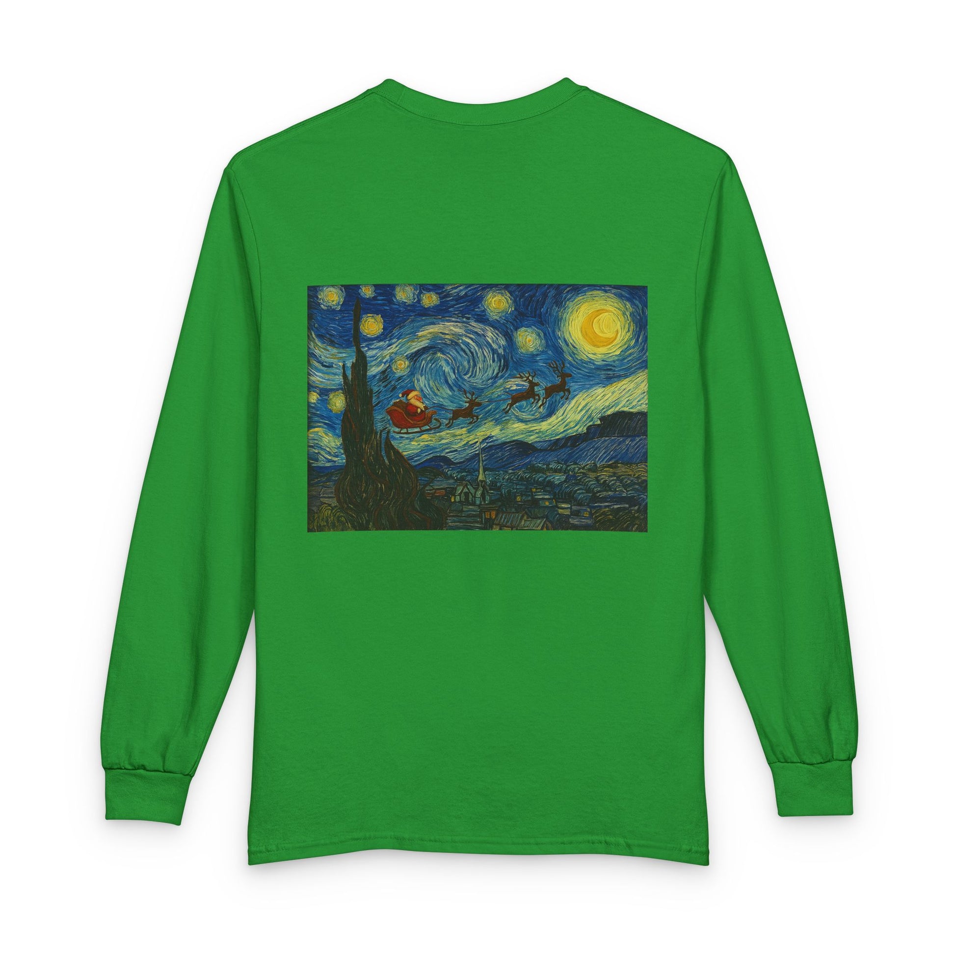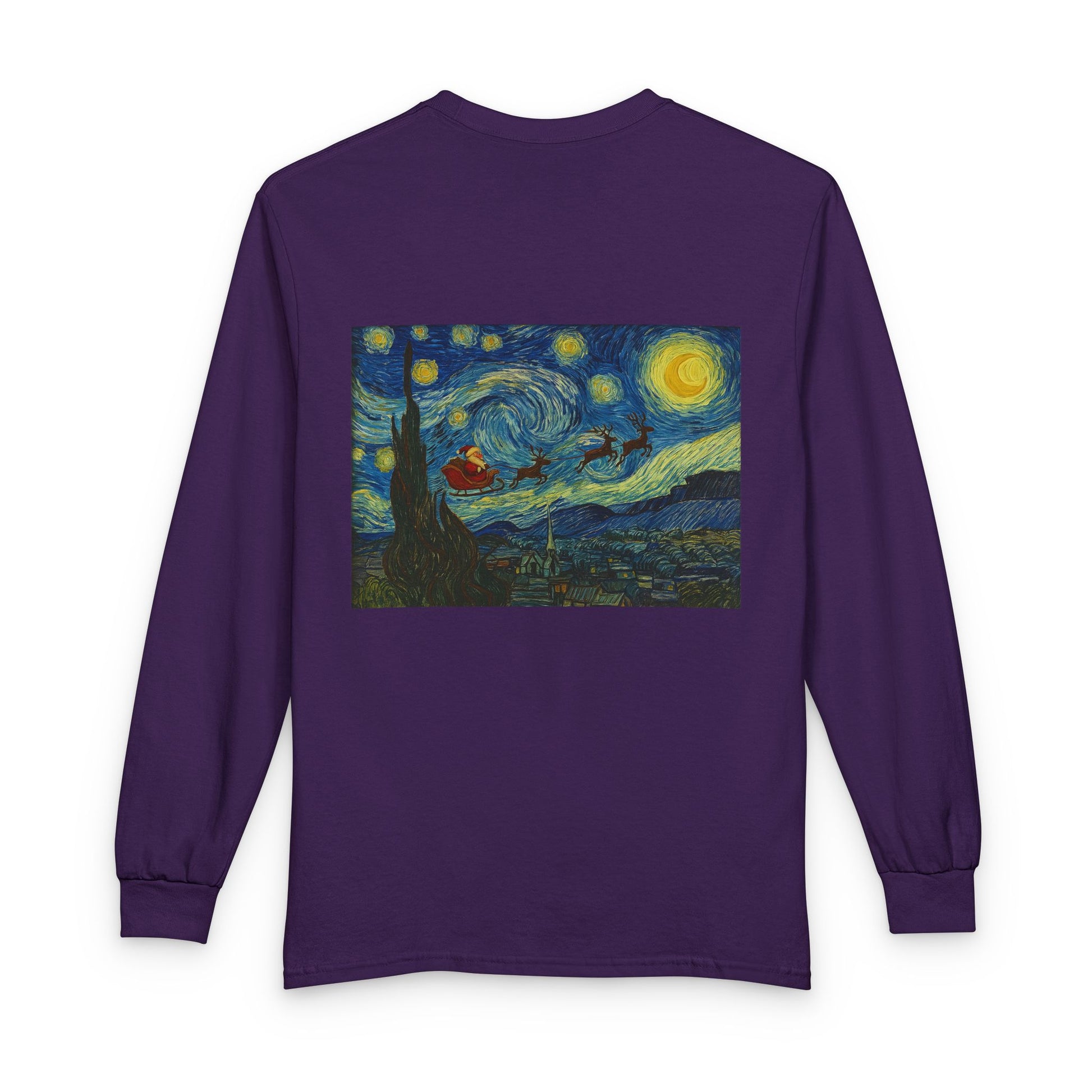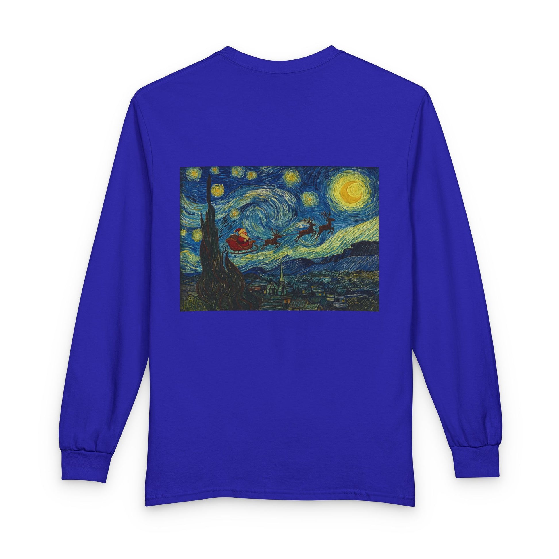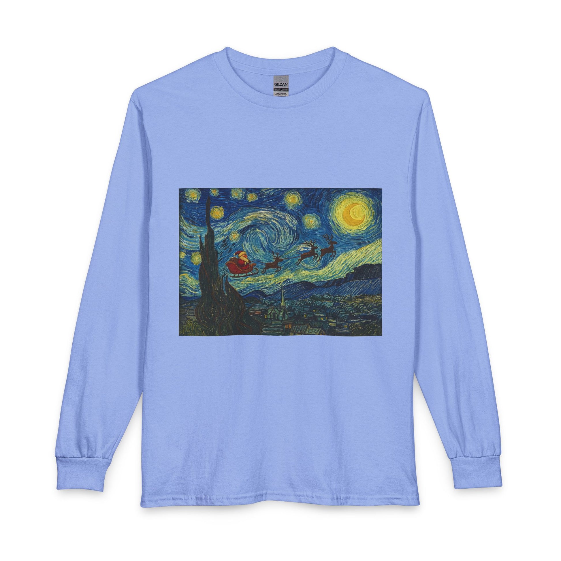 Starry Night Santa Long Sleeve T-Shirt | Van Gogh Style Christmas Artwork