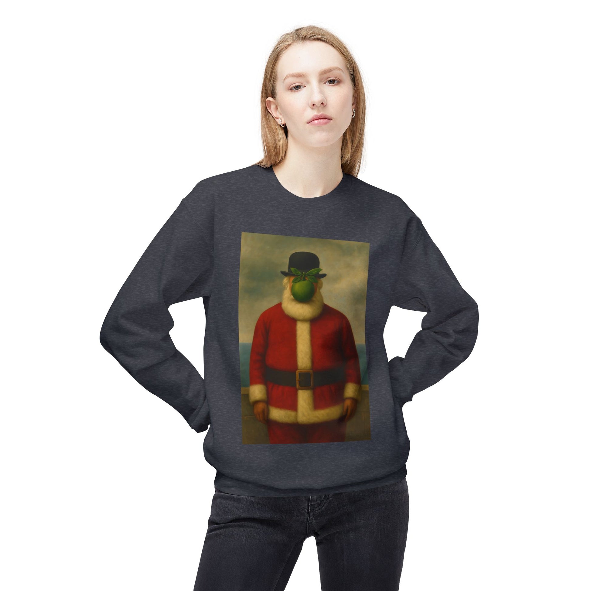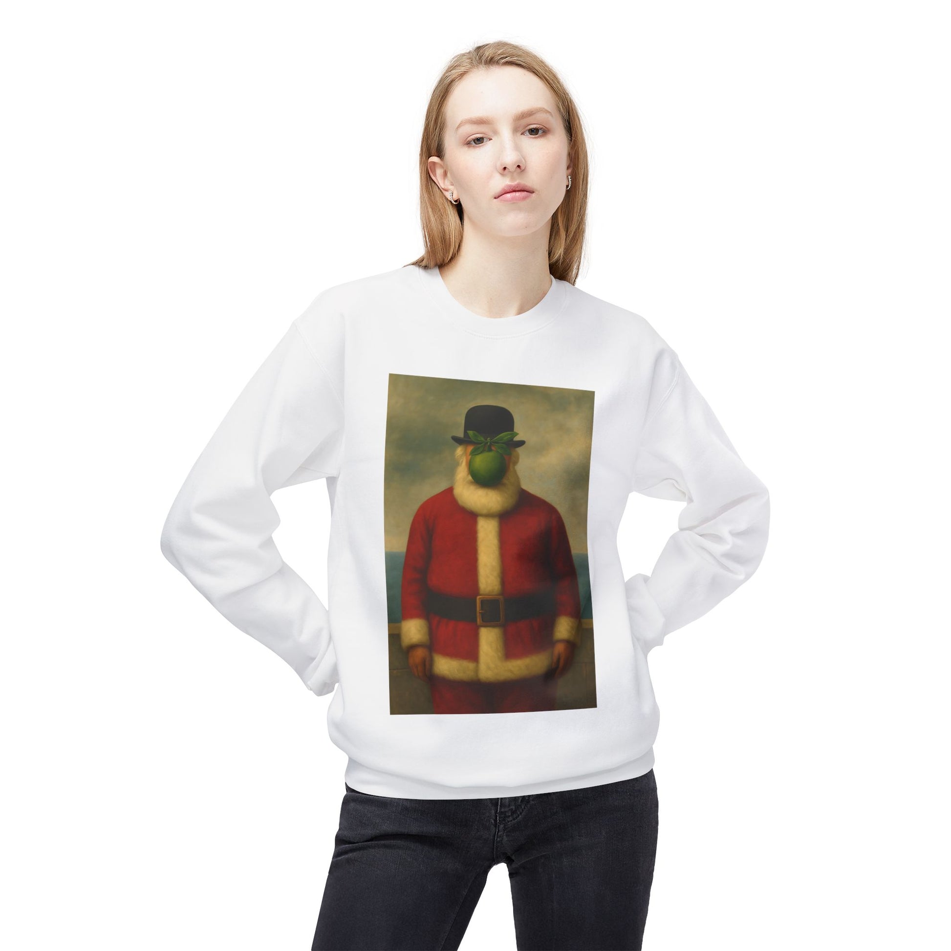 Surreal Pear Man Santa Sweatshirt | Holiday Art Hoodie-Style Crew